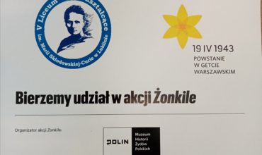 19 kwietnia 2023 r. nasza szkoła wzięła udział w akcji społeczno-edukacyjnej Żonkile upamiętniającej 80. rocznicę wybuchu powstania w getcie warszawskim. W ramach obchodów można było pobrać z biblioteki papierowego żonkila – symbol akcji oraz obejrzeć animowany film „Zdążyć przed Panem Bogiem”. Narracja filmu opartego na motywach książki „Zdążyć przed Panem Bogiem” Hanny […]