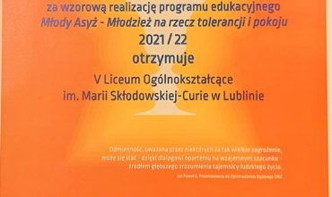 10 czerwca 2022 r. na Wydziale Biologii i Biotechnologii UMCS w Lublinie odbył się finał X edycji Wojewódzkiego Konkursu Biologicznego „Powtórka przed Maturą” dla uczniów szkół ponadpodstawowych. Miło nam poinformować, że Aleksandra Szulowska z klasy II c uzyskała wyróżnienie w konkursie. Opiekun uczennicy Pani Agnieszka Przybycień-Sioma Gratulujemy i życzymy dalszych sukcesów.