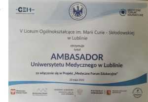 Dnia 09.06.2022 na Wydziale Politologii UMCS odbyła się uroczysta gala wręczenia nagród za udział w konkursie: „ Go Creative 2021 – Freedom”. Konkurs został zorganizowany przez Katedrę Anglistyki i Amerykanistyki UMCS oraz Koło Naukowe Anglistów UMCS w Lublinie. Uczniowie z naszej szkoły : Aleksandra Kujan, Katarzyna Drozd, Julia Wilkołazka, Franciszek Matraszek i Jakub Górniak napisali […]