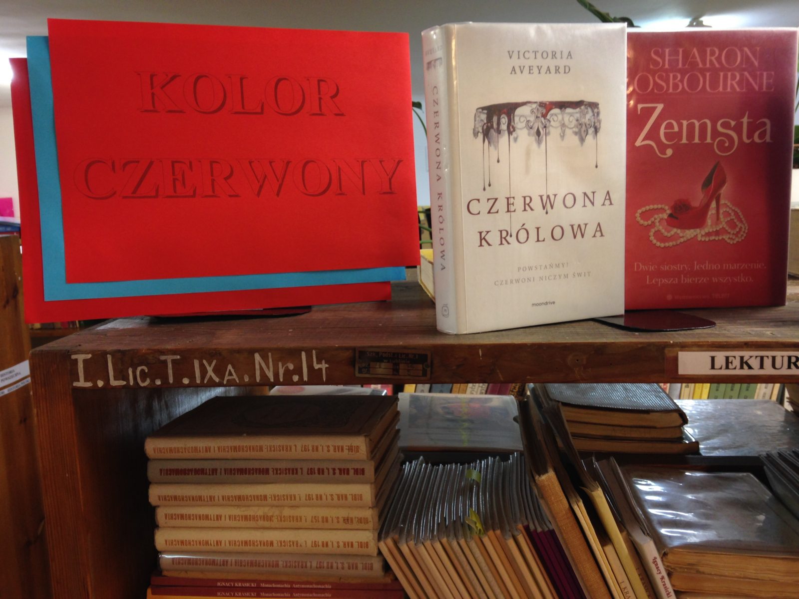 Biblioteka szkolna rozpoczyna akcję promowania książek ze swojego księgozbioru ze względu na kolor zawarty w tytule , na okładce a może nawet wynikający z kontekstu samej treści dzieła literackiego.