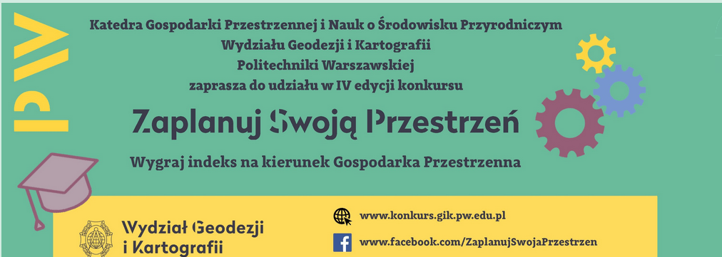 Laureaci Konkursu zostaną przyjęci na studia inżynierskie I stopnia na kierunek Gospodarka Przestrzenna prowadzony na Wydziale Geodezji i Kartografii Politechniki Warszawskiej, z pominięciem procedury kwalifikacyjnej w roku akademickim 2019/2020.