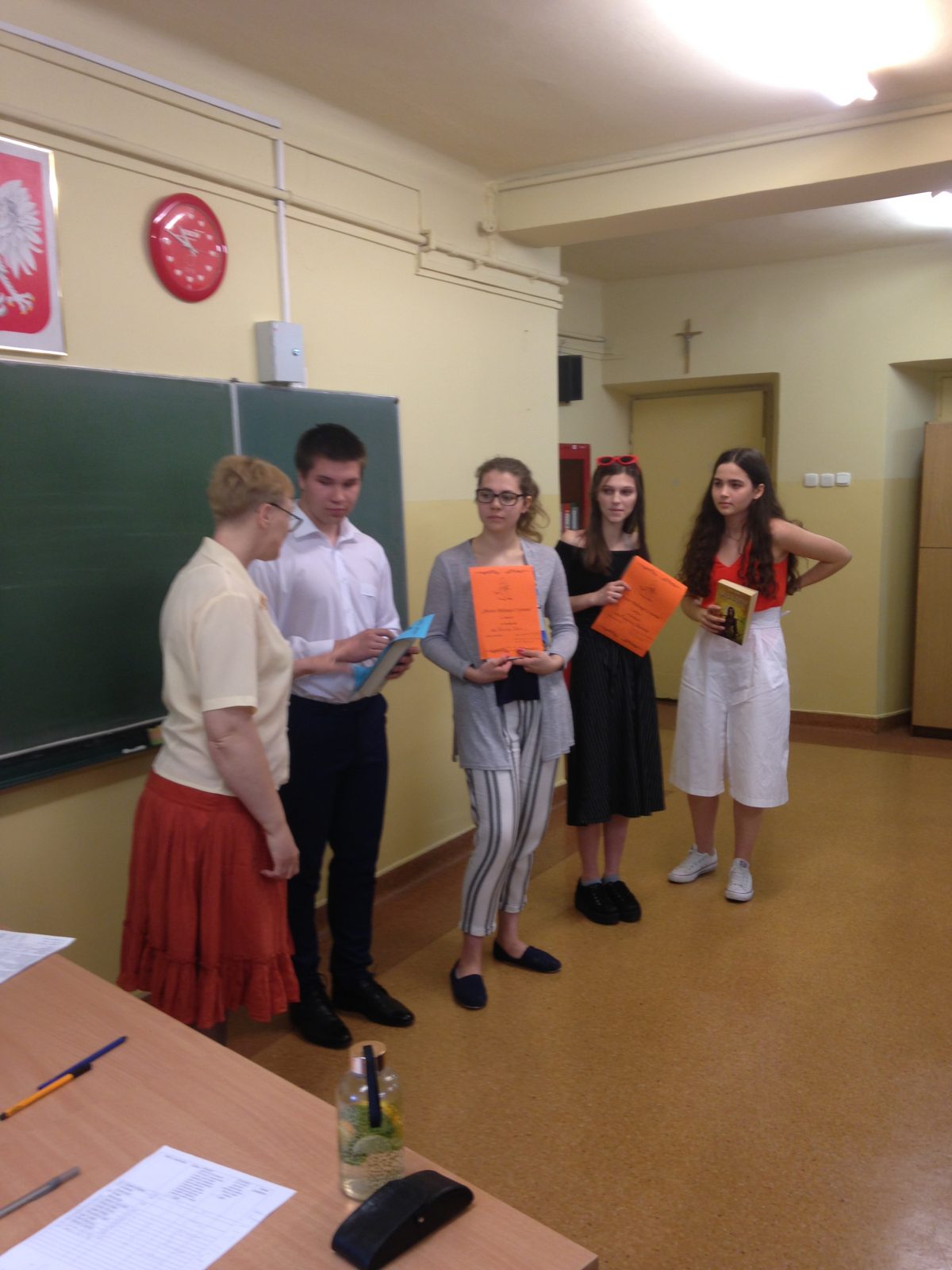 5 czerwca br. odbył się finał konkursu, w którym wzięło udział 27 uczniów z klas 1a,1d, 1h, 2b, 2f, 2h i 2j. Komisja konkursowa w składzie p. M. Kobylińska, p. A. Lipczyńska i p. i. Agacińska przyznała nagrody. Otrzymali je: Magdalena Banasiak z kl. 1h za zajęcie I miejsca, Weronika Fedor z kl. 2b za zajęcie II miejsca i Krzysztof Gąsior z kl. 1a za zajęcie III miejsca. Wyróżnienia otrzymały: Anna Bonecka z kl. 1h, Iga Cudak z kl. 2h, Kinga Skoczylas z kl. 1h i Sandra Szymbor z kl. 2j.