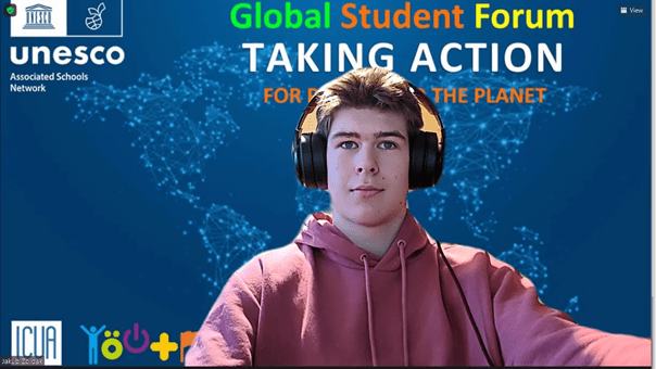 W dniach 07-09.12.2021 odbyło się wirtualne Globalne Forum Młodzieży Szkół Stowarzyszonych UNESCO. Ponad 2500 uczestników z 25 krajów, podzielonych na 140 grup dyskutowało w trzech językach (angielskim, hiszpańskim i francuskim) o przyszłości edukacji na rzecz zrównoważonego rozwoju i globalnego obywatelstwa. Jednym z dwojga reprezentantów Polski był Jakub Żołdak z klasy 2f V Liceum Ogólnokształcącego im. Marii Skłodowskiej Curie w Lublinie, nominowany przez Polski Komitet ds. UNESCO. Do udziału w Forum przygotowali Jakuba: Ewa Postępska-Piłat i Łukasz Kopytko