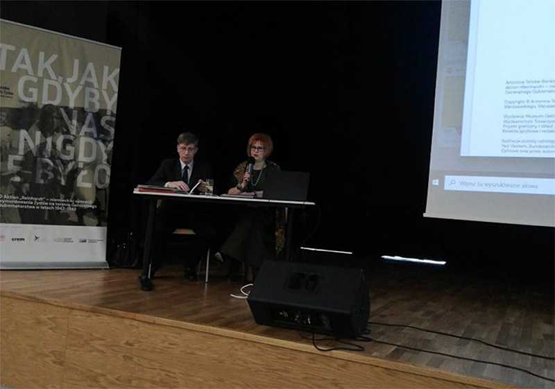 Dnia 7 kwietnia 2022 r. odbyła się konferencja historyczno – dydaktyczna dla nauczycieli szkół ponadpodstawowych województwa lubelskiego przygotowana przez Towarzystwo Projektów Edukacyjnych w Warszawie i Muzeum Getta Warszawskiego w sali teatralnej Zespołu Szkół nr 13 przy ul. Berylowej 7 w Lublinie. V Liceum Ogólnokształcące w Lublinie reprezentowała pani dyrektor Beata Jezierska, a część warsztatową (metodyczną) poprowadził pan Jarosław Bonecki. Warsztat dydaktyczny pt. Tak, jak gdyby nas nigdy nie było. Aktion „Reinhardt”. Niemiecka operacja wymordowania Żydów na terenie Generalnego Gubernatorstwa w latach 1942-1943 przeprowadzili Antonina Telicka-Bonecka i Jarosław Bonecki. Autorzy warsztatu zaprezentowali materiały dla nauczycieli jako propozycję dydaktyczną, umożliwiającą przeprowadzenie zajęć trwających jedną lub dwie godziny lekcyjne, przybliżających uczniom szkoły ponadpodstawowej ten trudny temat. Autorzy udostępnili nauczycielom i uczniom szeroki wybór materiałów źródłowych do pracy poszczególnych grup, jak również prezentację porządkującą przebieg Aktion „Reinhardt” i składający się z 20 zadań test utrwalający wiedzę z zakresu tego tematu.