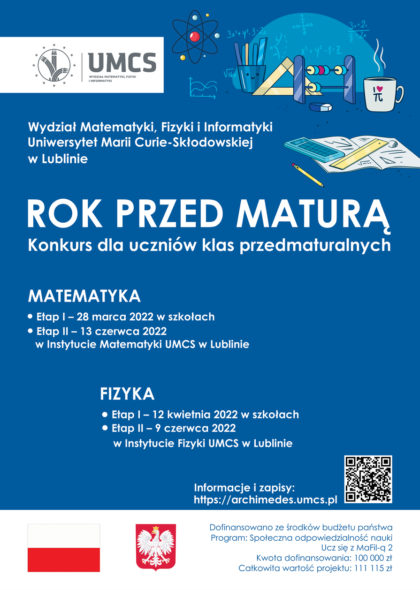 W dniu 13 czerwca dwoje reprezentantów naszej szkoły Wiktoria Madura oraz Piotr Dulniak (uczniowie klasy 3bp) brało udział w finale konkursu „Rok przed maturą – matematyka” organizowanego przez Wydział Matematyki, Fizyki i Informatyki Uniwersytetu Marii Curie-Skłodowskiej w Lublinie.