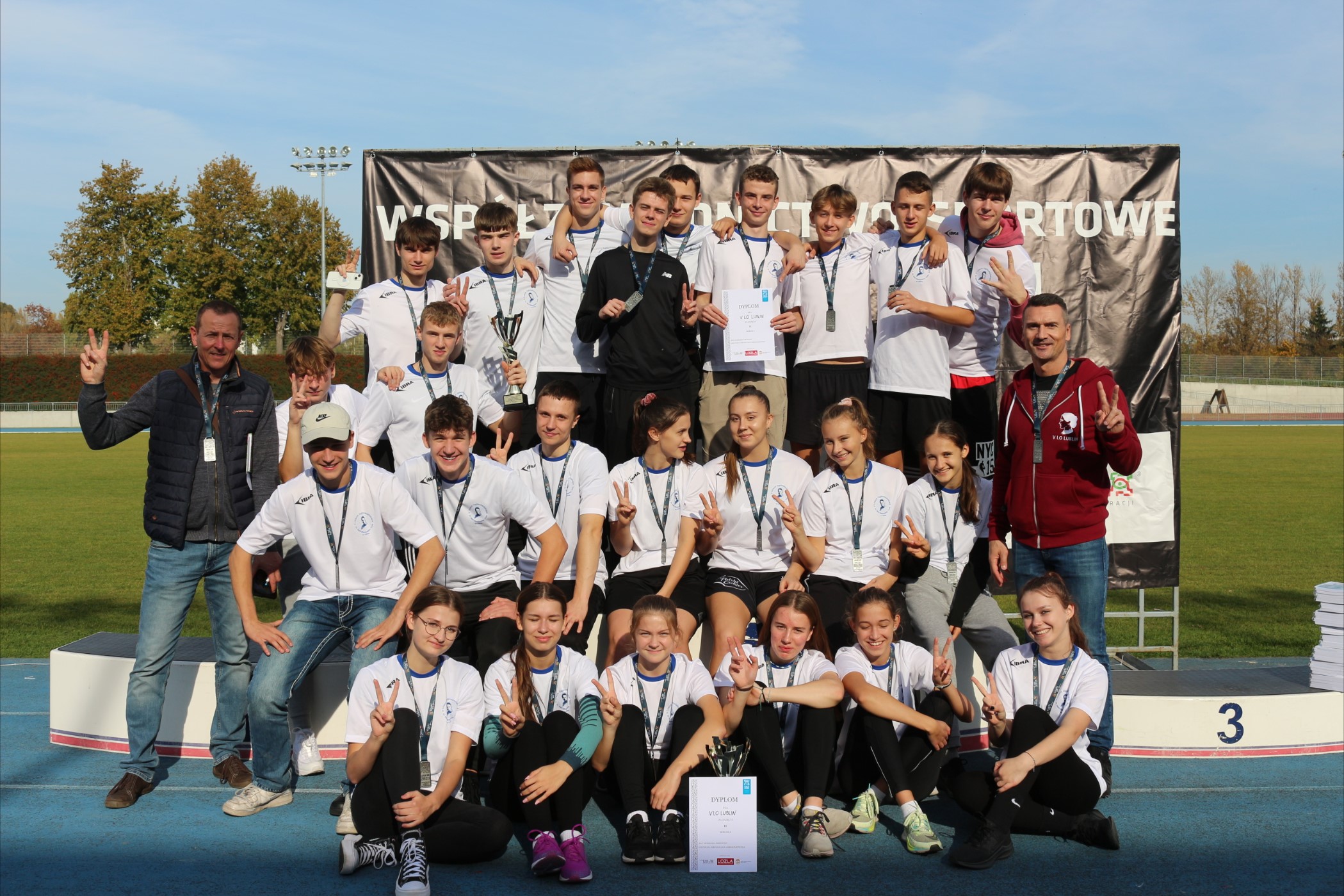 W dniu 17.10.2022 r. na stadionie miejskim w Lublinie odbyły się zawody lekkoatletyczne w ramach współzawodnictwa szkół ponadpodstawowych miasta Lublin. Obie nasze reprezentacje spisały się bardzo dobrze, zarówno dziewczęta jak i chłopcy, zajęły wysokie drugie miejsca, co dało im możliwość reprezentowania naszego miasta na zawodach wojewódzkich, które odbędą się już w piątek 21.10.2022 r. w Lublinie. Składy naszych reprezentacji wraz z konkurencjami: