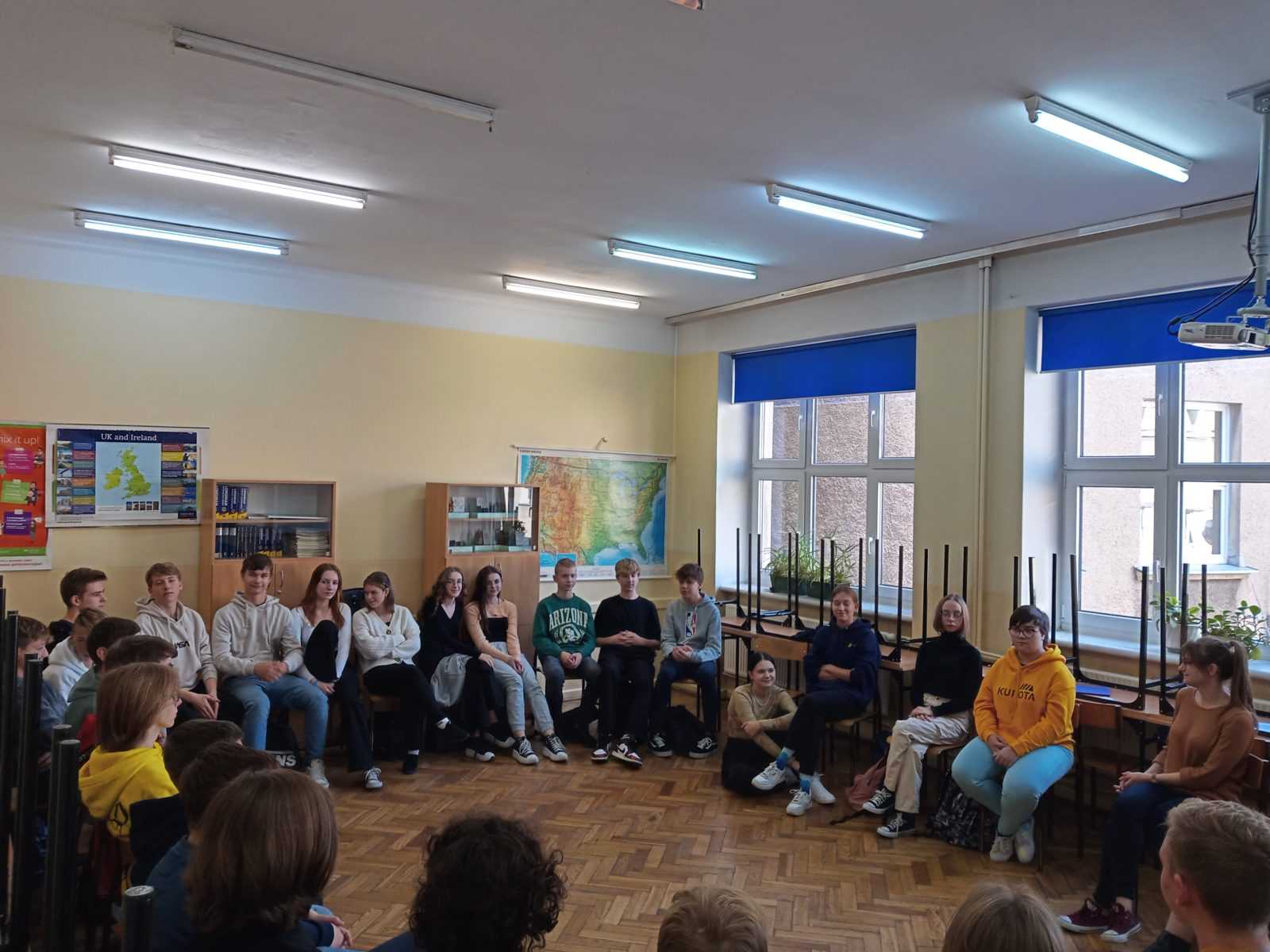 W dniu 20 października klasa 1a i 1c uczestniczyła w zajęciach warsztatowych realizowanych w ramach współpracy z Fundacją Sempre a Frente. Zajęcia trwały trzy godziny lekcyjne, których tematem przewodnim było kształtowanie adekwatnej samooceny. Uczniowie określali swoje mocne strony. Wskazywali obszary, które ich zdaniem powinni w sobie rozwijać. Omawiali swoje osiągnięcia i porażki. Uczyli się jak przyjąć pochwałę i jak doceniać chwaląc innych. Wzmacniano poczucie wartości uczniów poprzez docenianie ich wysiłków.