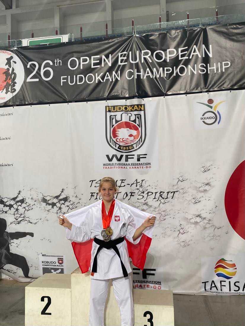 Miło nam poinformować, że uczennica klasy 1e – Monika Ostrowska, na co dzień trenująca w Lubelskim Klubie Karate Tradycyjnym i obecnie należąca do Kadry Narodowej, brała udział w bardzo ważnej imprezie sportowej. We włoskim Rimini w dniach 21-23 października rozegrano 26 Mistrzostwa Europy Karate Fudokan. Monika brała udział w czterech konkurencjach i cztery razy stawała na podium, zdobywając: