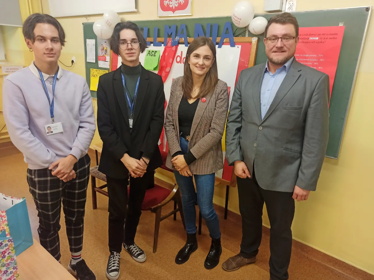 10 stycznia klasy 4C oraz 4D naszego Liceum wzięły udział w spotkaniu w ramach Promocji Dnia Rejestracji Potencjalnych Dawców szpiku, na którym gościliśmy Panią Anię Kulik – mamę Zosi, która trzy lata temu została Biorcą przeszczepu, oraz Pana Marcina Kojdera będącego Dawcą faktycznym. Nasi Goście z wielkim zaangażowaniem i charyzmą odpowiadali na liczne pytania młodzieży, dzieląc się swoim doświadczeniem i emocjami związanymi z procedurą zostania Biorcą i Dawcą krwiotwórczych komórek macierzystych. Ich autentyczność chwytała za serce!