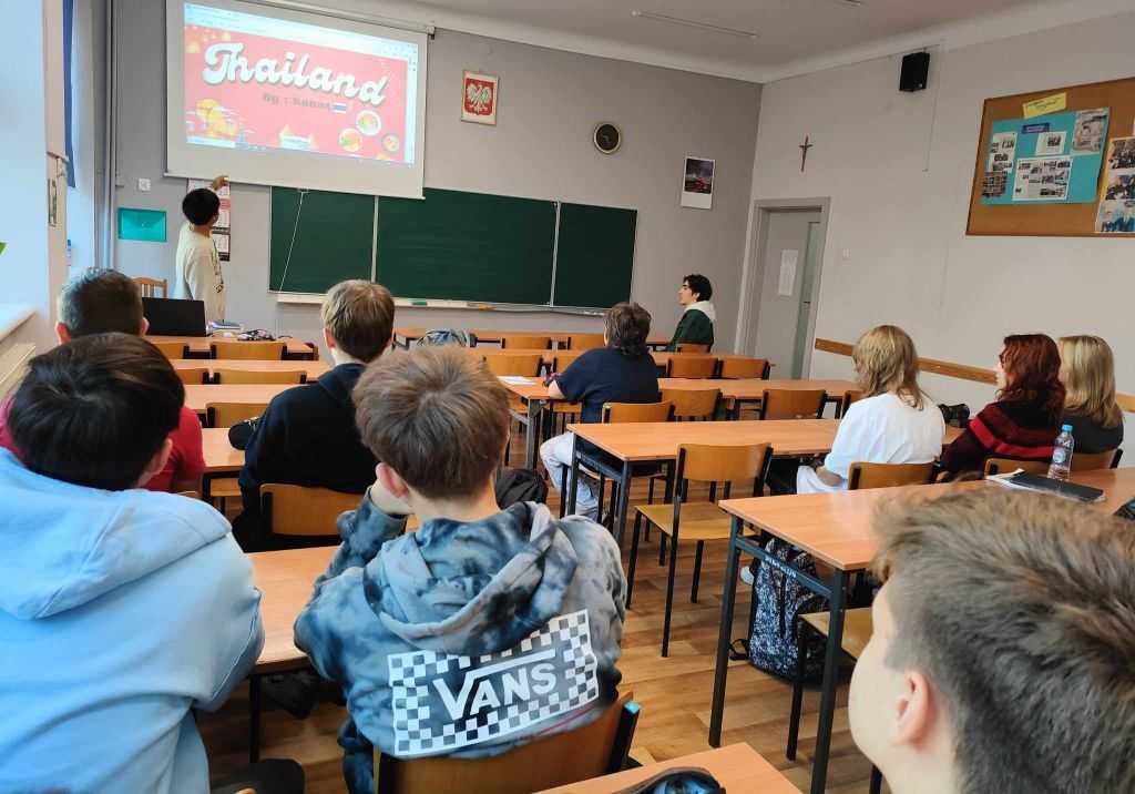 Uczniowie naszego liceum mogli zapoznać się z kulturą innych narodowości, czerpiąc wiedzę „z pierwszej ręki”. Klasa 2d brała udział w wykładzie online przygotowanym przez UNESCO, w języku angielskim, na temat tradycji halloween w różnych krajach, takich jak Argentyna, Belgia i Włochy. Wykład miał miejsce 31 października. Natomiast 7 listopada gościliśmy uczniów przebywających w Polsce na wymianie w ramach szkół AFS. Chłopcy, którzy pochodzili z Włoch i Tajlandii, przedstawili prezentacje w klasie 3a, 3b i 3f. To była doskonała lekcja języka angielskiego w praktyce!