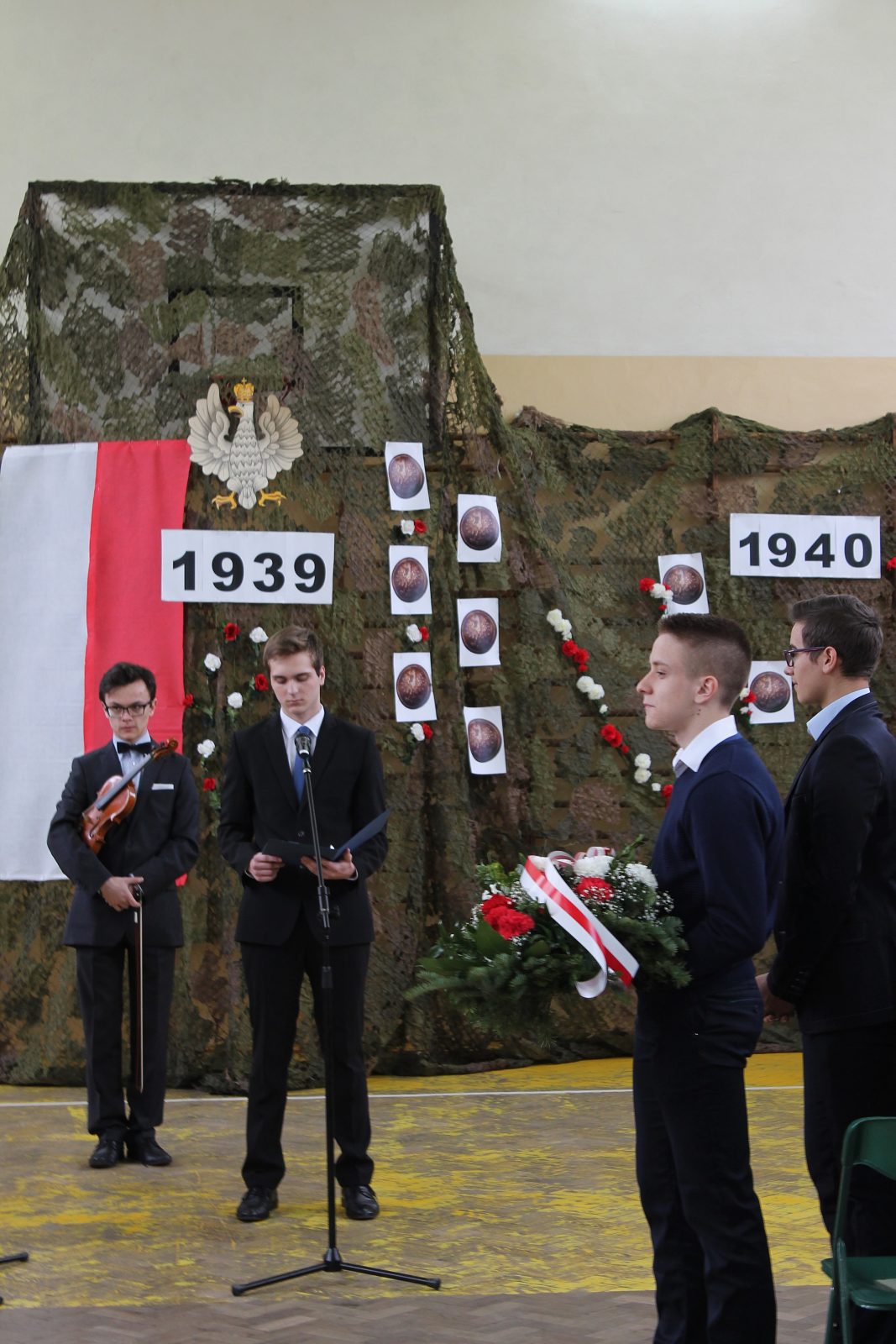 W trakcie części artystycznej usłyszeć można było utwory takie jak „Cisza. Modlitwa Katyńska” czy „Powrót Rozstrzelanej Armii” w wykonaniu uczniów naszej szkoły. Uroczystość uświetniły także patriotyczne wiersze recytowane przez pierwszoklasistów przy akompaniamencie skrzypiec i gitary. W trakcie występu delegacja naszej szkoły udała się na pamiątkową mogiłę postawioną ku pamięci ofiar Katynia.