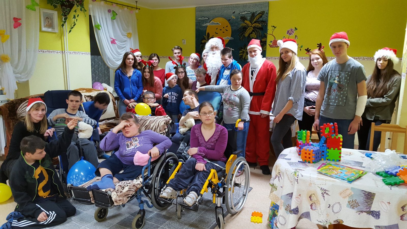 8 grudnia młodzież przebrana za postaci mikołajowego orszaku rysowała, śpiewała i bawiła się klockami z dziećmi, które oczekiwały przyjazdu starszych kolegów. Wspólna zabawa, śpiewanie kolęd uświadomiły wszystkim, że nie ma barier, a to co najcenniejsze człowiek może podarować drugiemu człowiekowi to serce!